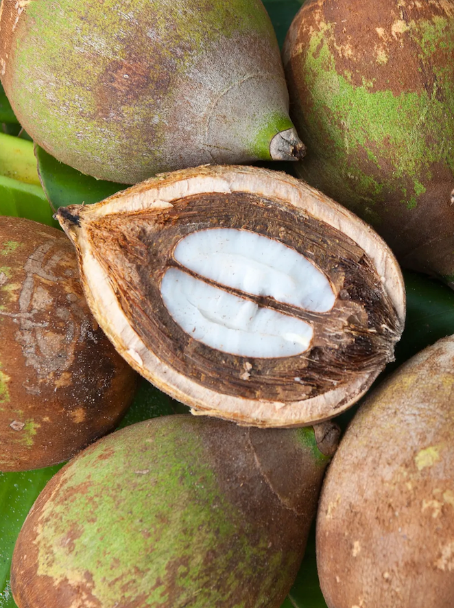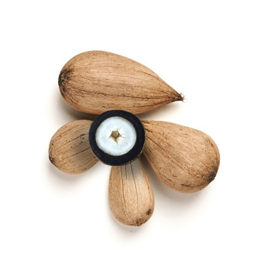 Árbol nativo de la selva Amazónica de Bolivia, puede vivir mil años y llegar a los 50 metros de altura, corriendo serio peligro de extinción. Su fruto contien las almendras que se extrae el aceite. Rico en ácido oleico y vitaminas A, B, C y E, proteínas, minerales como calcio, hierro, zinc, sodio, potasio y selenio, esenciales para la vitalidad de la pie, muy parecida a la del óleo de sésamo. Actúa en el tejido cutáneo formando una capa protectora que impide la evaporación del agua de la piel, manteniendo su hidratación natural, consiguiendo una piel tersa y suave.